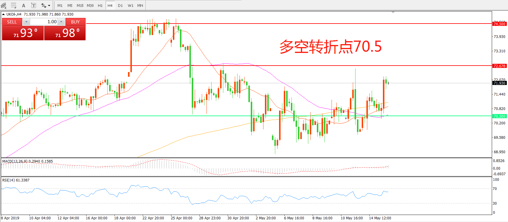 交易策略:在70.50之上看涨,目标72.50    74.50
