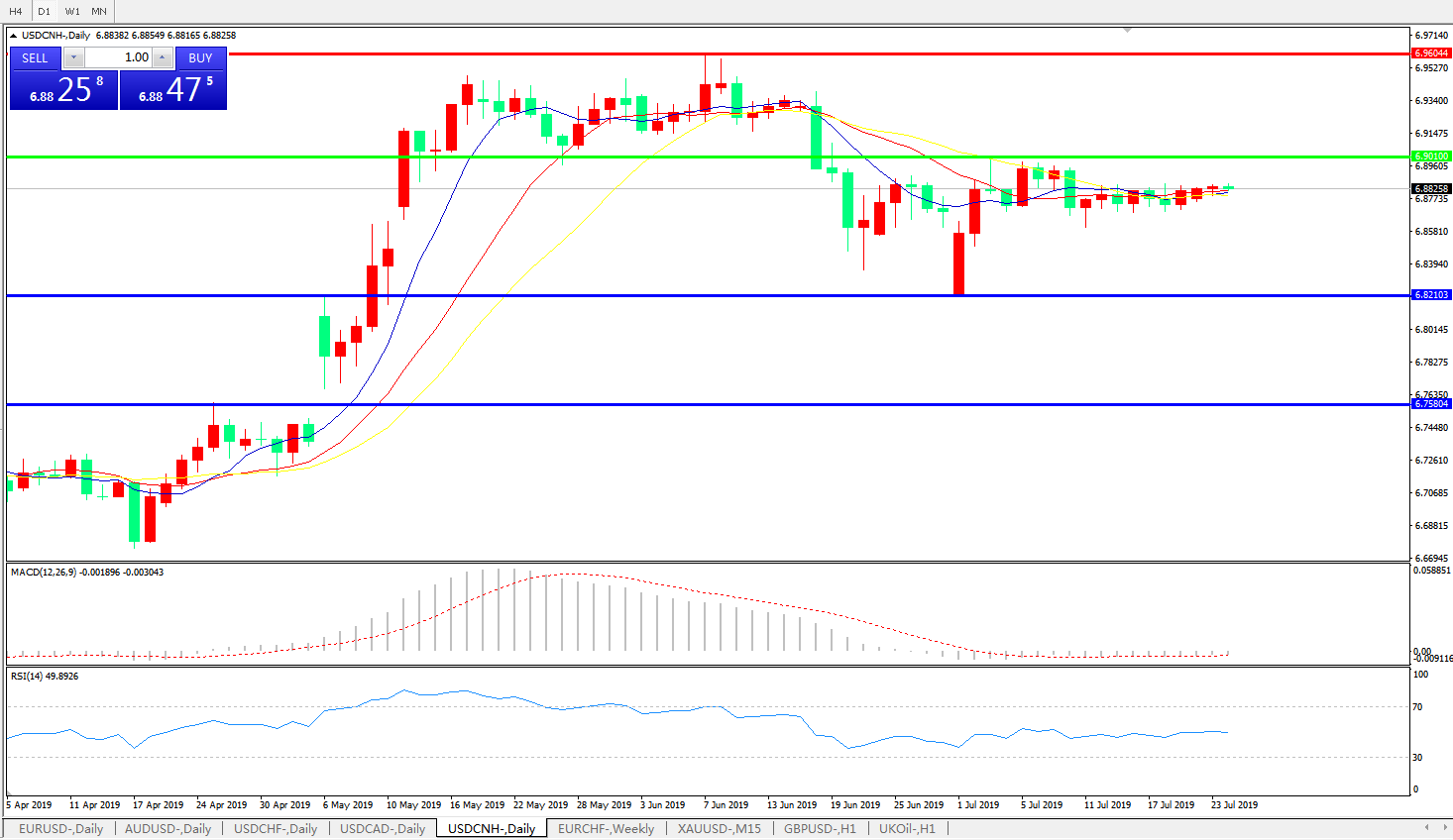 技术面简析:日图均线继续粘合无方向,MACD徘徊在0轴附近且动能柱若隐若现,RSI趋于走平,行情缺乏关键信息指引持续整理,预计短期汇价将继续整理或向下修正,中期关注6.9010附近多空转折区域压制是否有效及中美贸易谈判最新进展。