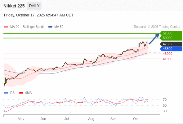 在 45800 之上,看涨,目标价位为 50000 ,然后为 51800 。