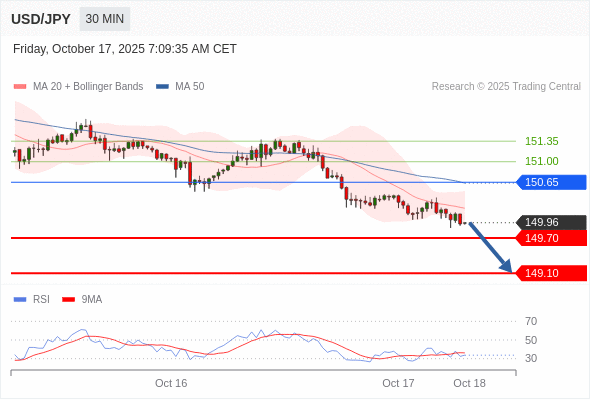 在 150.65 之下,看跌,目标价位为 149.70 ,然后为 149.10 。