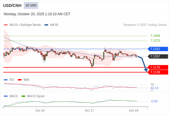 美元/人民币 当日内 : 看跌,在 7.1312 之下。