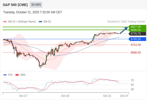 在 6745.00 之上,看涨,目标价位为 6800.00 ,然后为 6817.00 。