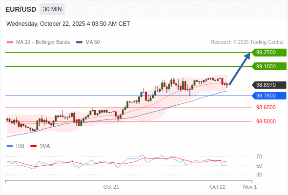 欧元/美元 当日内: 存在压力。
