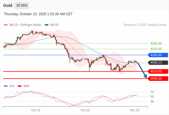 在 4160.00 之下,看跌,目标价位为 4010.00 ,然后为 3945.00 。