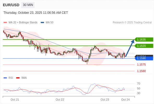 在 1.1590 之上,看涨,目标价位为 1.1620 ,然后为 1.1635 。