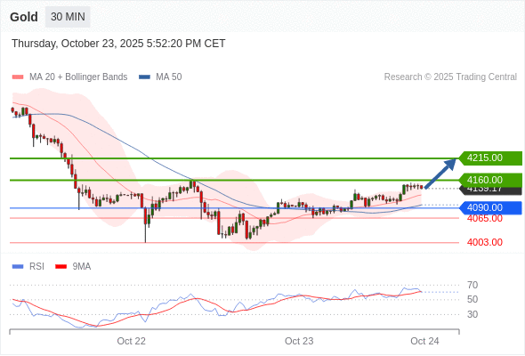 交易策略: 在 4090.00 之上,看涨,目标价位为 4160.00 ,然后为 4215.00 。