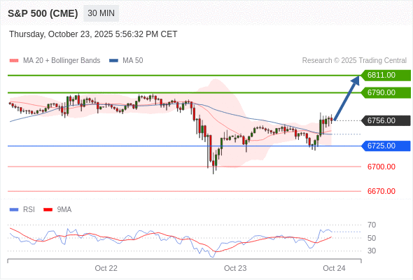 交易策略: 在 6725.00 之上,看涨,目标价位为 6790.00 ,然后为 6811.00 。