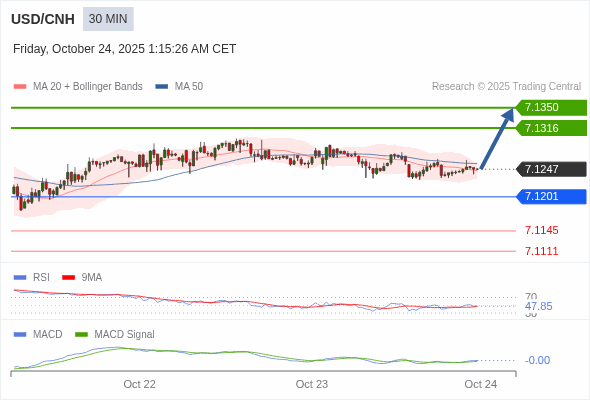 美元/人民币 当日内 : 有上涨的可能,目标价位定在 7.1350 。