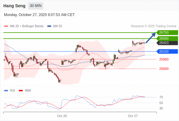在 26150 之上,看涨,目标价位为 26560 ,然后为 26750 。