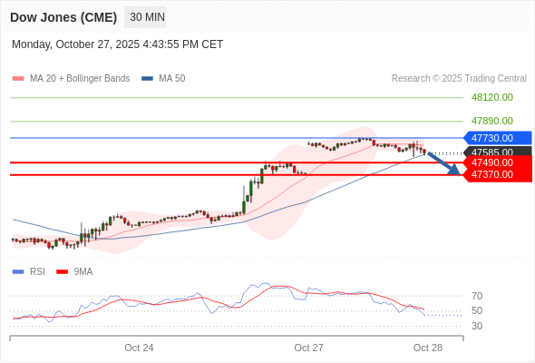 交易策略: 在 47730.00 之下,看跌,目标价位为 47490.00 ,然后为 47370.00 。