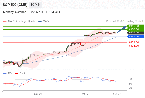 在 6867.00 之上,看涨,目标价位为 6900.00 ,然后为 6915.00 。