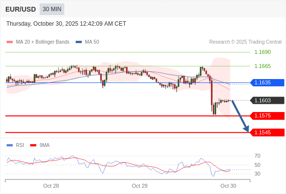 交易策略: 在 1.1635 之下,看跌,目标价位为 1.1575 ,然后为 1.1545 。
