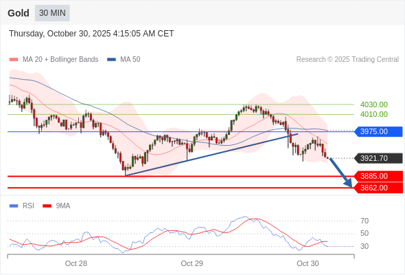 在 3975.00 之下,看跌,目标价位为 3885.00 ,然后为 3862.00 。