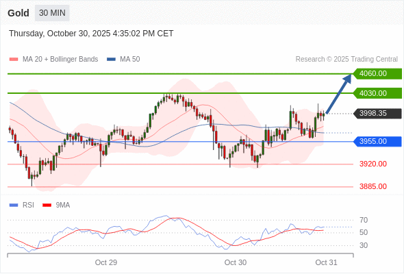 在 3955.00 之上,看涨,目标价位为 4030.00 ,然后为 4060.00 。