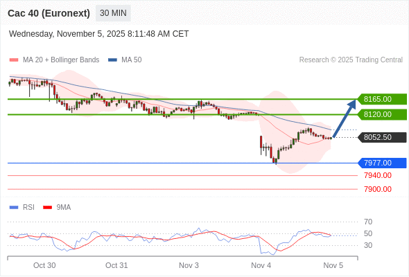 在 7977.00 之上,看涨,目标价位为 8120.00 ,然后为 8165.00 。