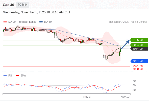 Cac 40 当日内: 超短线(当日内)支撑位在7964.00附近。
