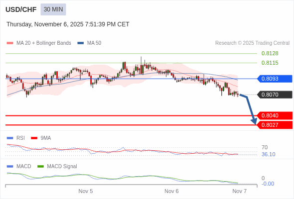 交易策略: 看跌,在 0.8093 之下。
