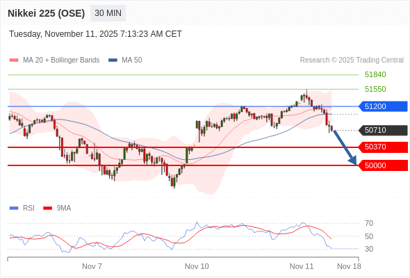 在 51200 之下,看跌,目标价位为 50370 ,然后为 50000 。