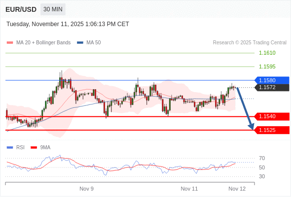 在 1.1580 之下,看跌,目标价位为 1.1540 ,然后为 1.1525 。