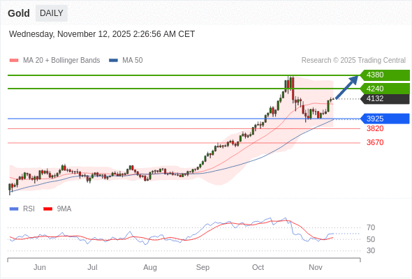 在 3925 之上,看涨,目标价位为 4240 ,然后为 4380 。