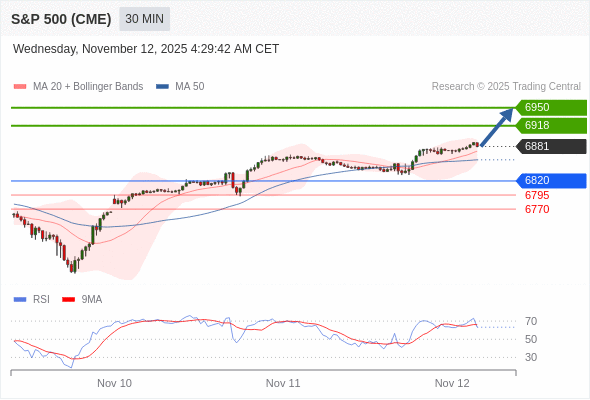 在 6820 之上,看涨,目标价位为 6918 ,然后为 6950 。