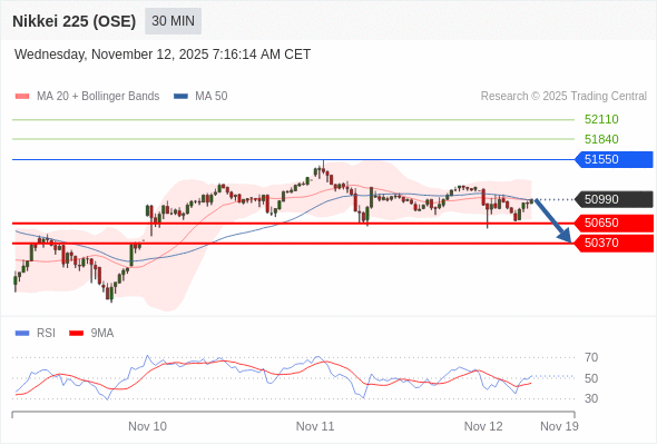 在 51550 之下,看跌,目标价位为 50650 ,然后为 50370 。