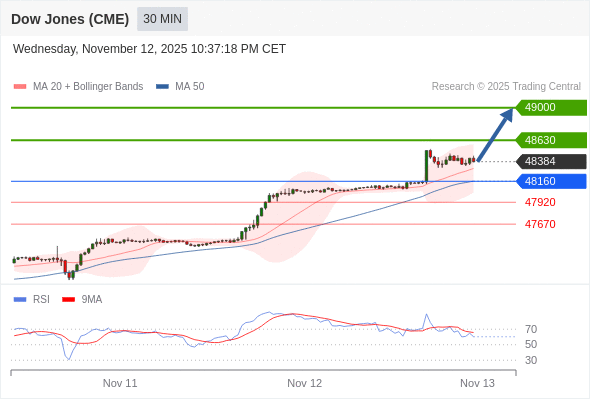 在 48160 之上,看涨,目标价位为 48630 ,然后为 49000 。