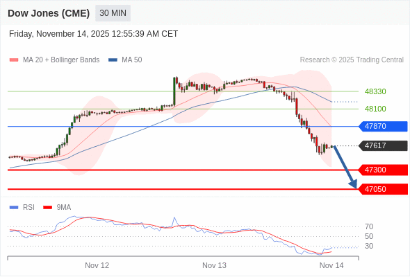 在 47870 之下,看跌,目标价位为 47300 ,然后为 47050 。