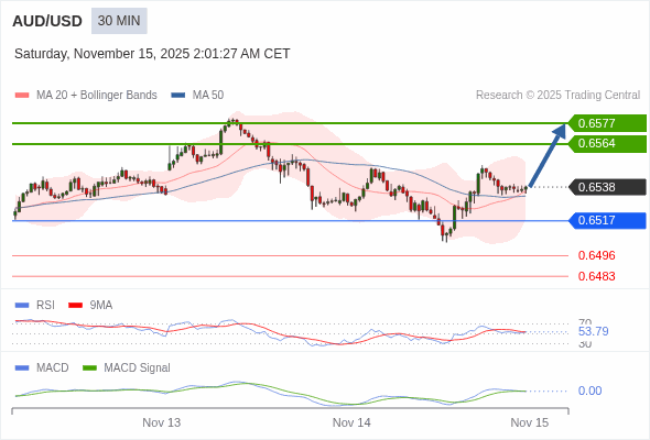 交易策略: 看涨,当 0.6517 为支撑位,目标定在0.6577。