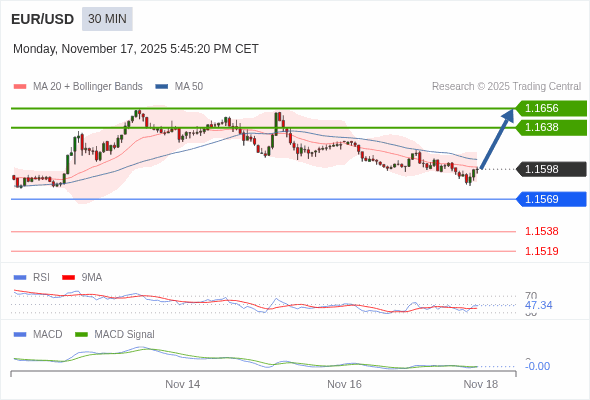 替代方案: 在1.1569以下,期待1.1538和1.1519。