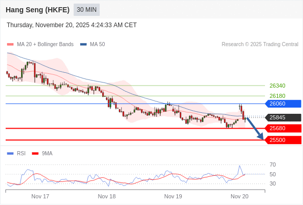 在 26060 之下,看跌,目标价位为 25680 ,然后为 25500 。