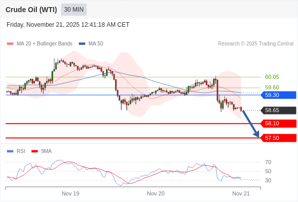 在 59.30 之下,看跌,目标价位为 58.10 ,然后为 57.50 。
