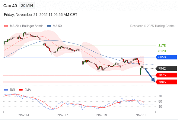 Cac 40 当日内: 短期关键阻力位在8058。