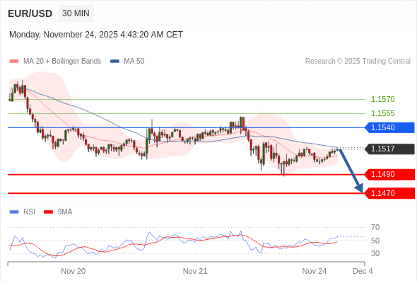 在 1.1540 之下,看跌,目标价位为 1.1490 ,然后为 1.1470 。