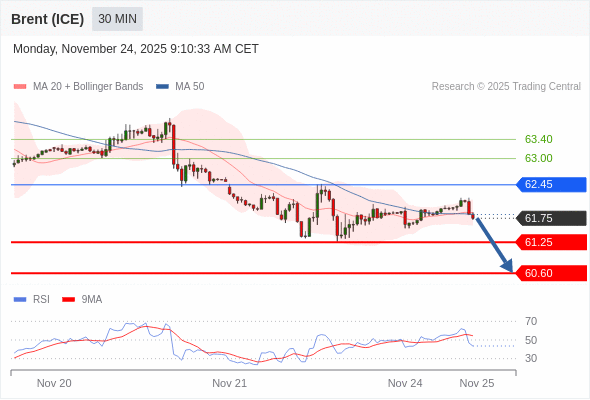 交易策略: 在 62.45 之下,看跌,目标价位为 61.25 ,然后为 60.60 。