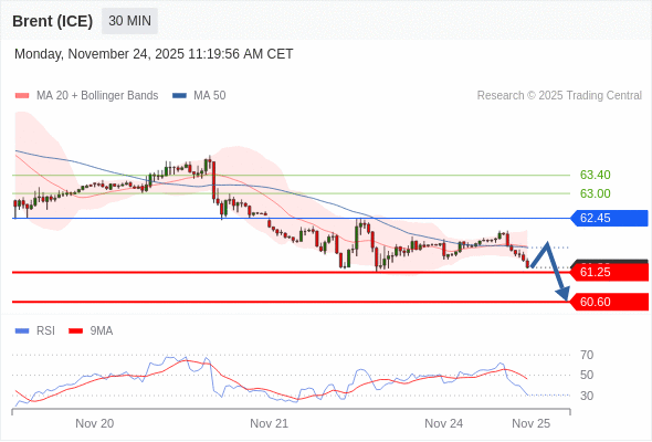 在 62.45 之下,看跌,目标价位为 61.25 ,然后为 60.60 。