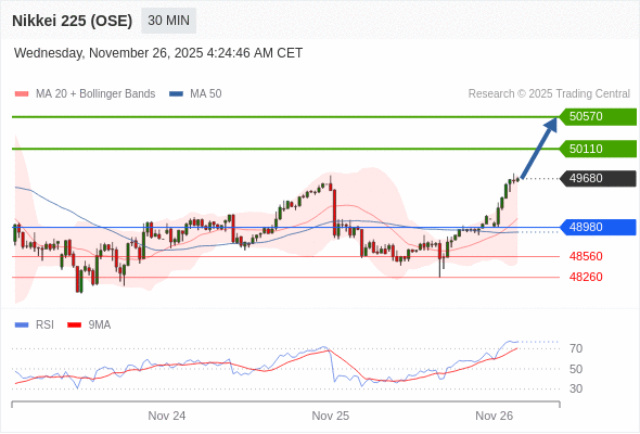 在 48980 之上,看涨,目标价位为 50110 ,然后为 50570 。