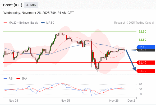 交易策略: 在 62.15 之下,看跌,目标价位为 61.40 ,然后为 61.00 。