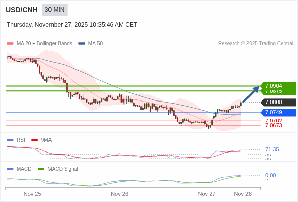 替代方案: 在7.0749以下,期待7.0702和7.0673。