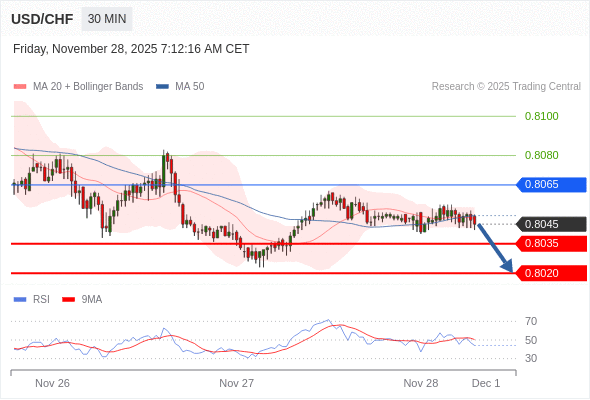 在 0.8065 之下,看跌,目标价位为 0.8035 ,然后为 0.8020 。