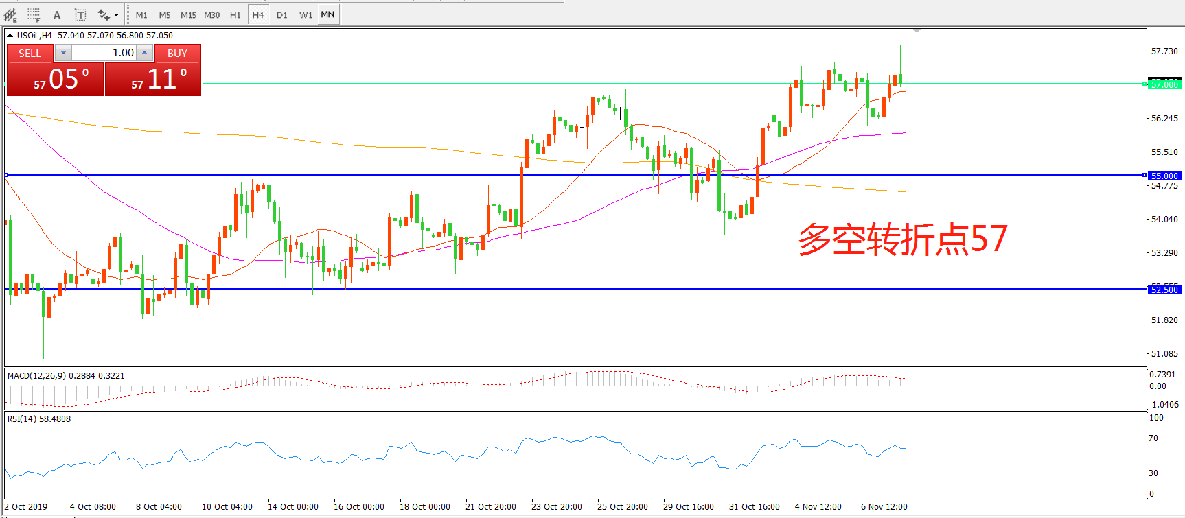 多空转折点:57.00