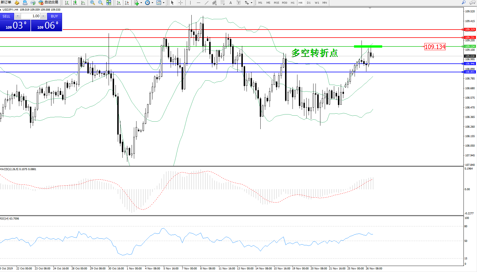 美元兑日元上涨0.11%109.05附近,最高触及至109.21,为1112日以来最高水平,日内整体受到贸易局势好转的提振,市场风险偏好情绪回暖也令全球股市走高,这令避险日元的吸引力下降,投资者需要进一步关注贸易局势的进展。