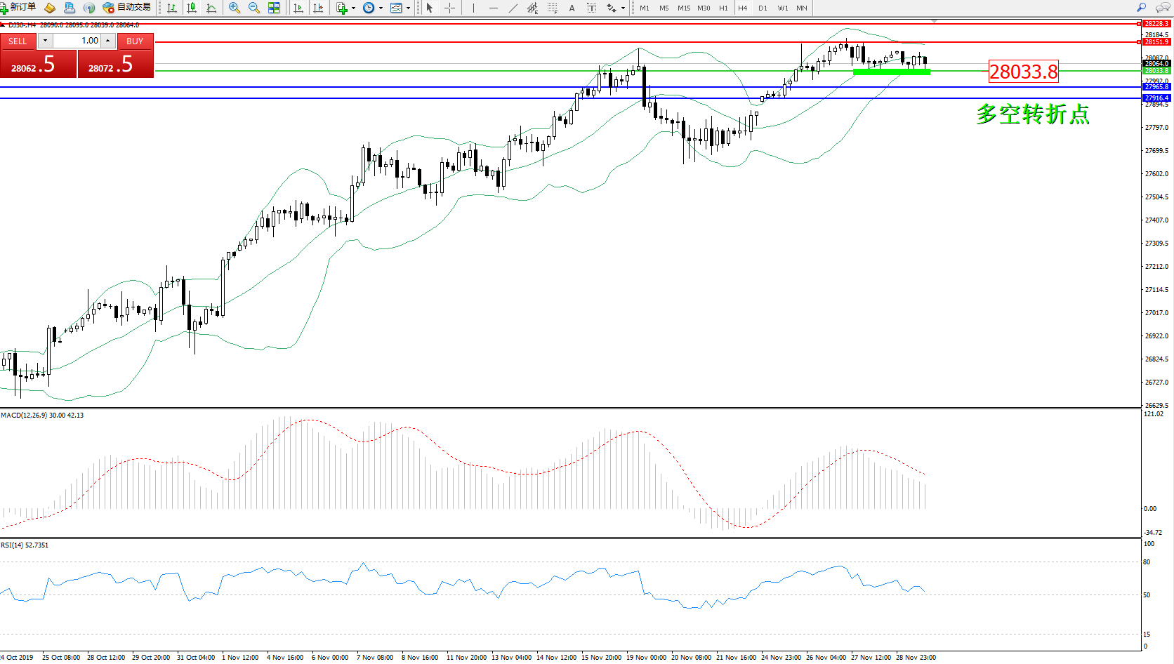 道琼斯指数11月29日(周五)收盘下跌112.59点,跌幅0.40%,报28051.41点。美国股市从创纪录高点回落,跟随欧洲和亚洲股市的跌势,以低迷表现结束全球基准指数的连续第三个月上涨;能源和非必需消费股跌幅最大,大盘总交易量比30天平均水平低约30%。贸易协议仍未签署令投资者紧张不安,黑色星期五和网络星期一皆是零售商提供最多货品及最优惠的价格,以吸引消费者踊跃消费的日子。