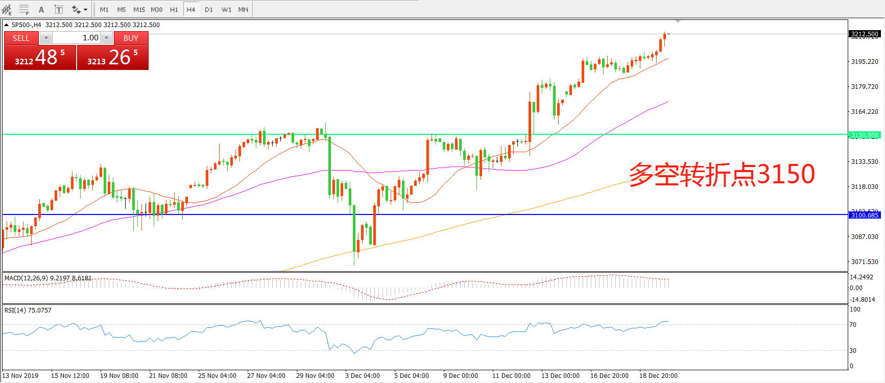 4小时图看,标普500震荡走高,整体维持温和涨势,均线系统呈多头排列,MACD红柱增加,RSI指标走平,日内延续上行概率较大。