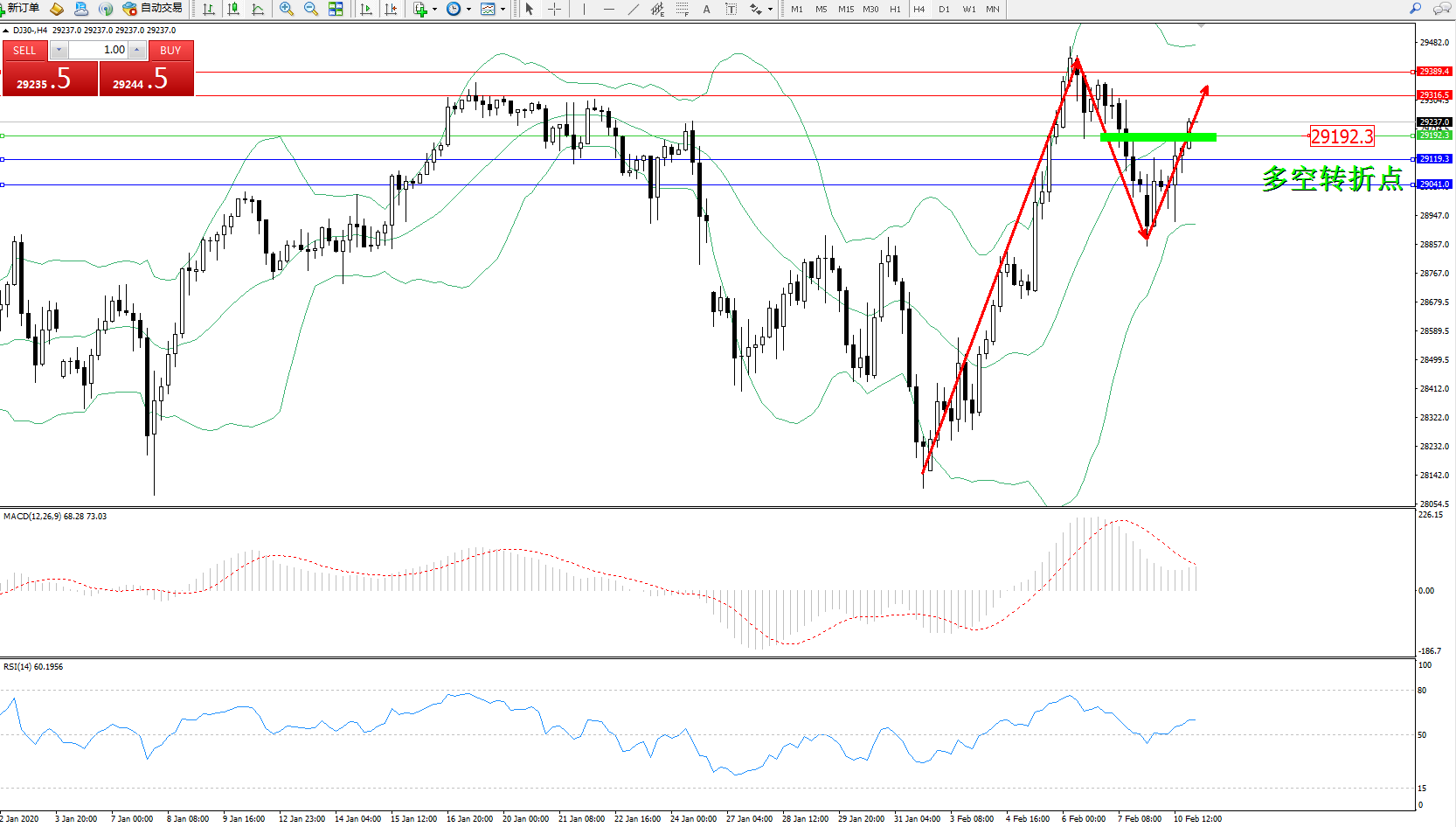 道琼斯指数2月10日(周一)收盘上涨174.30点,涨幅0.60%,报29276.82点。美国股市在本周伊始开局强劲,投资者暂时忽视疫情的潜在经济冲击,准备好迎接更多的公司业绩消息。上周发布的经济数据突显了美国劳动力市场的实力和韧性,显示出了美国经济扩张的可持续性。美国相对强劲的经济数据也令美元更具吸引力;美元指数创去年10月10日以来新高至98.88;美国经济前景稳定性高于过去,未来18个月经济增速和核心通胀预期都在1.9%。