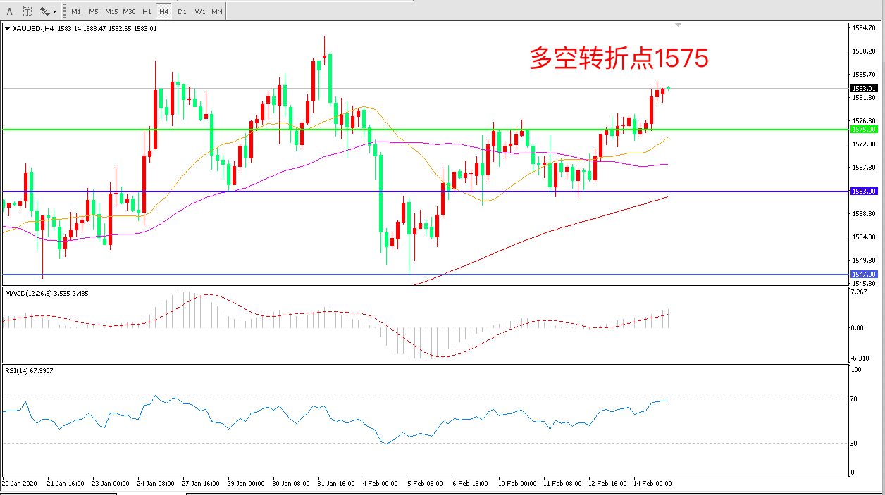 备选策略:在1575.00之下看跌,目标1563.00 1547.00