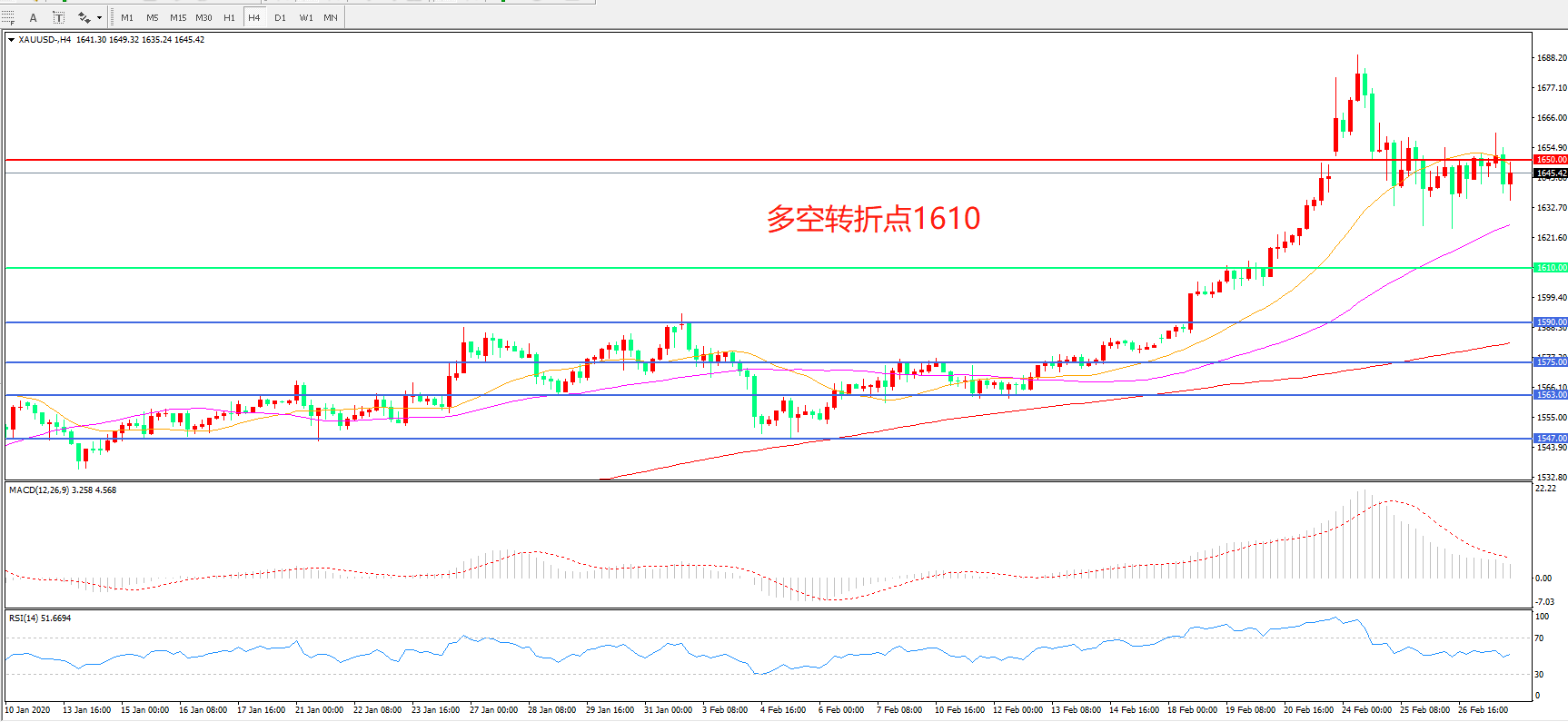 备选策略:在1610.00之下看跌,目标1650.00 1700.00