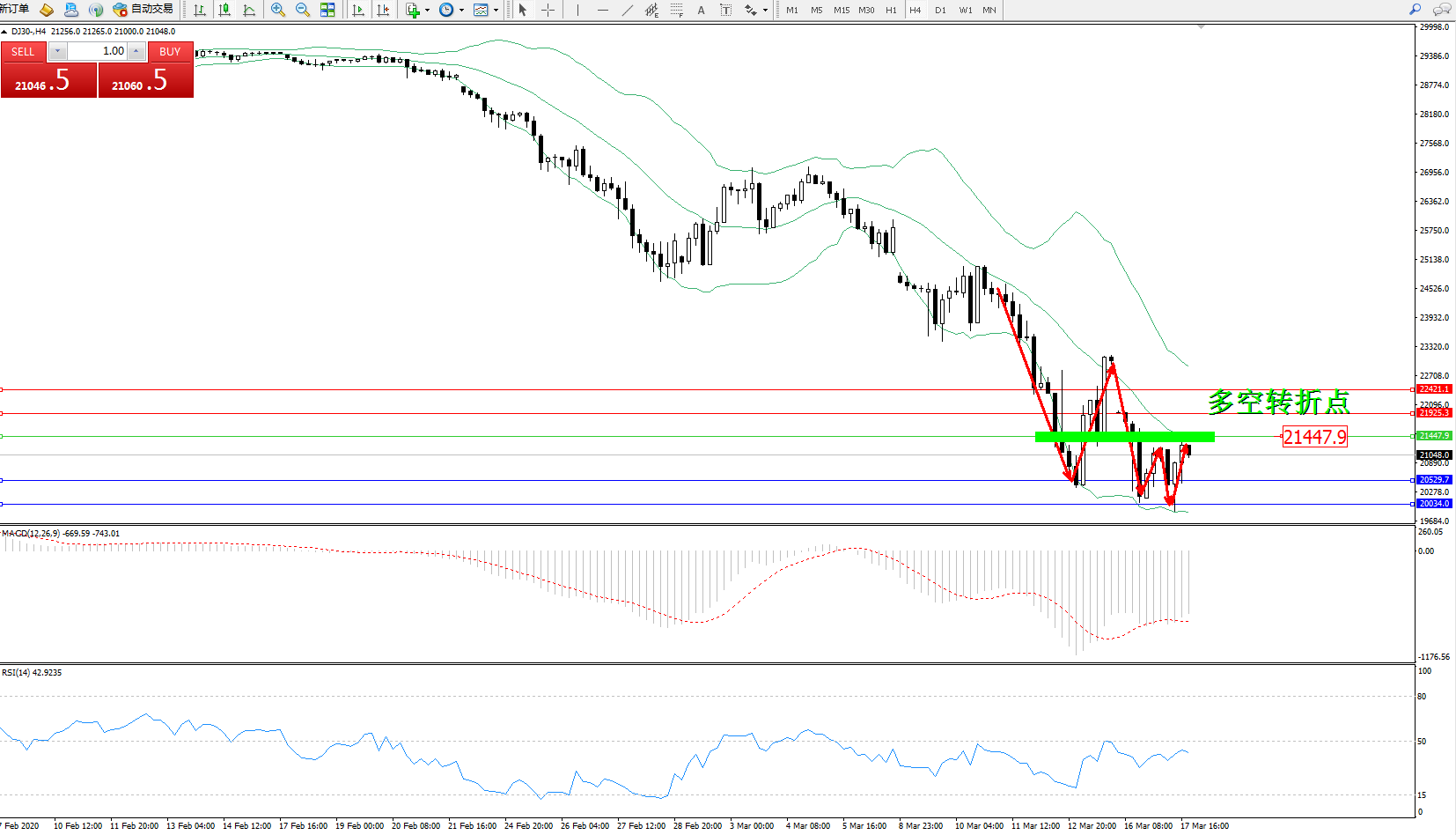 技术点评:空头动力处于布林带指标中下轨区间不断震荡下移中,底部触及支撑后开始回升至布林带指标中轨附近徘徊,且布林带指标有持续收口走势中,MACD指标处于空头区域维持整理平移,RSI指标处于50均衡线下方持续弱势徘徊中;