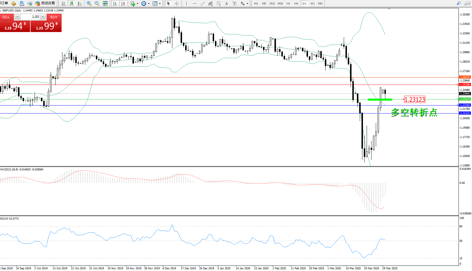 交易策略:1.23123上方看涨,目标1.25208、1.26270