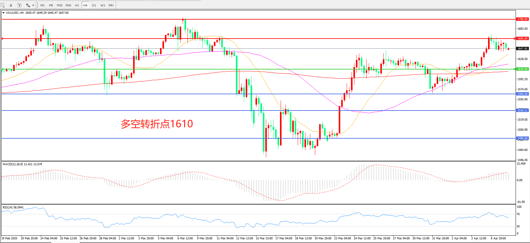 周二(4月7日),在全球疫情出现好转信号的刺激下,市场避险情绪有所回落,现货黄金一度自日内高位回落近35美元,最终收报1648.68美元/盎司,但美国确诊病例已超过37万,经济遭受打击的力度前所未见,在3月的最后两周里,美国初请失业金人数已接近1000万,增幅甚至超过了全球金融危机最严重时期,所以央行出台更多刺激措施、降低利率的预期将继续支撑金价。
